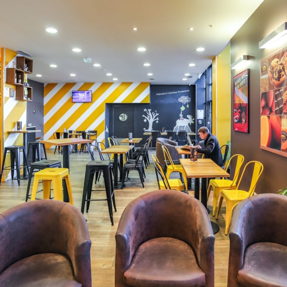 Angoulins et son fameux Columbus Café. Envie d’une pause gourmande ? C’est parti pour le Columbus Café, Centre Commercial Carrefour Angoulins (porte 2), D137, 17690 Angoulins. Depuis 2014, nos spécialistes vous reçoivent dans une ambiance familiale, que vous veniez seul ou accompagné de vos amis, en famille, avec votre douce moitié. Au Columbus d’Angoulins, savourez, partagez, rencontrez. Idéal pour se réchauffer par une journée hivernale, on vous attend avec nos célèbres muffins, cookies et un chocolat chaud, de quoi vous remonter quand le baromètre fait des siennes. Le soleil brille et la soif vous gagne ? Prenez une pause fraîcheur revigorante, quel que soit votre choix : latte glacé aromatisé ou Smoothie. Au Columbus Café d’Angoulins , on offre à ses clients le Wifi et une belle terrasse pour une expérience unique. Vous avez faim ? Ça tombe bien ! Un bagel suivi d’un thé glacé et d’un muffin aux fruits : on vous donne aussi rendez-vous à l’heure du déjeuner. Passez par votre café préféré à Angoulins du lundi au samedi : 08 : 00 – 20 : 00. Adapté aux familles et aux personnes en situation de handicap.