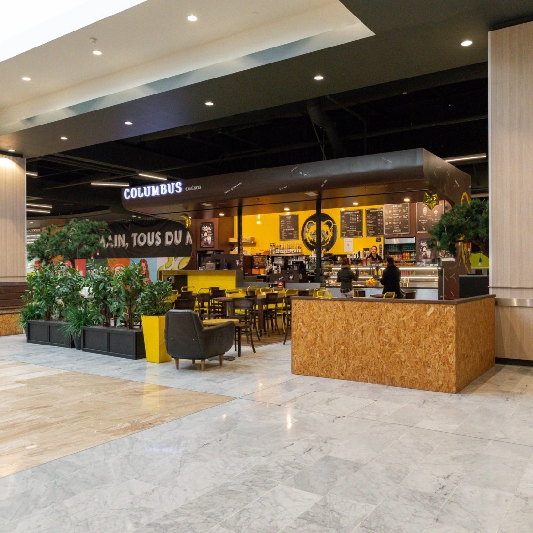 A proximité de Rennes, lors de votre pause shopping vous trouverez au Columbus Café, Centre Commercial Grand Quartier, 35760 Saint-Grégoire. Nos spécialistes sont à vos petits soins depuis 2014. Dans un décor familial, détendez-vous seul ou entre amis, avec vos proches ou avec l’être aimé autour d’un bon smoothie assorti d’une gourmandise sucrée ou d’un mets salé. Le Columbus Café du centre-commercial Grand Quartier est réputé pour son accueil chaleureux. Il fait gris cet après-midi ? vous serez réconforté par un moka ou un chocolat chaud accompagné d’une petite sucrerie. Si c’est un rafraîchissement qui vous tente, choisissez plutôt un smoothie ou un café latte glacé caramel salé. Lors de la pause déjeuner, pourquoi ne pas choisir un sandwich accompagné d’un Elixir Columbus et d’un carré Columbus citron meringué. Venez nous voir du lundi au samedi : 09 : 00 – 20 : 00. Adapté aux familles.