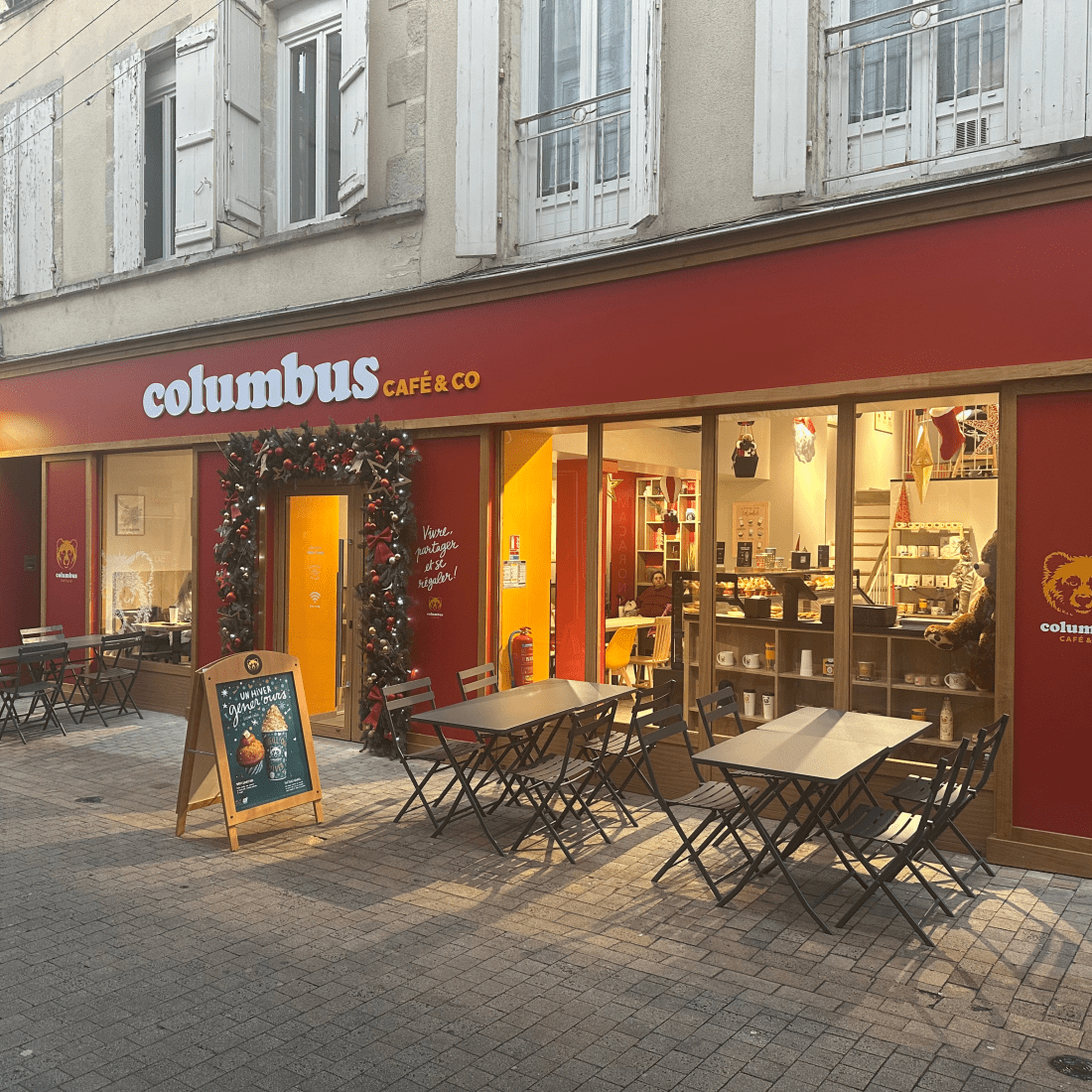 This opening is the first for the two locals Kévin Armand and Sigismond Hollevoet. It is the third Columbus Café in the Lot-et-Garonne department after two in place in Agen. Located in the center of Villeneuve-sur-Lot, this coffee shop offers 30 seats and 90 square meters, giving you all the space needed to relax, meet friends, work, or enjoy a sweet treat. You can easily park nearby and the establishment is accessible to mobility-reduced people. Bins are also at your disposal to recycle when leaving.