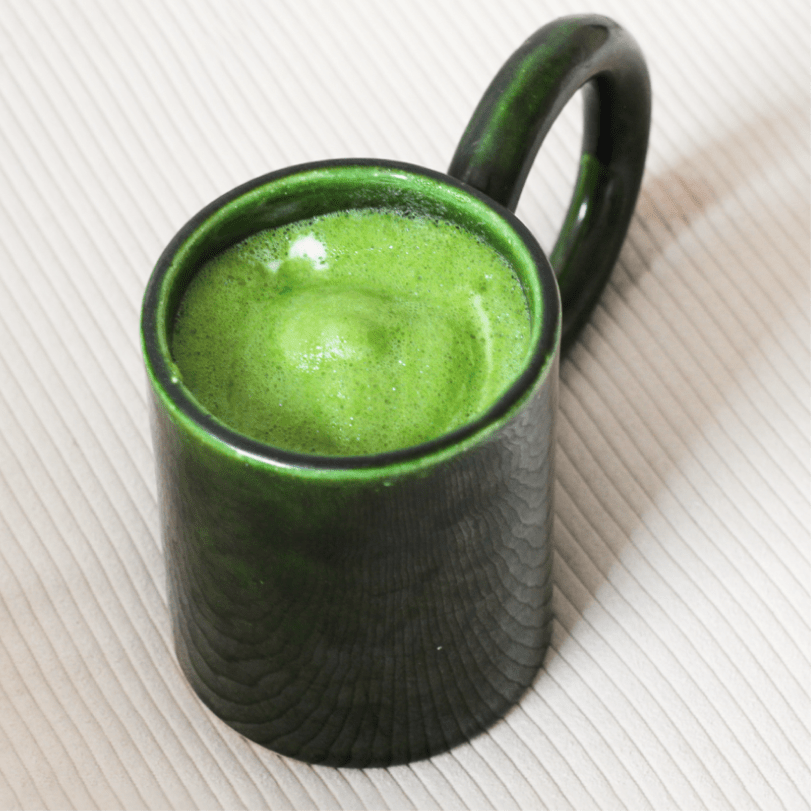 For the perfect Iced Matcha Latte: fill your glass with ice cubes before pouring in your mixture. The thermal shock preserves the vibrant emerald green color.