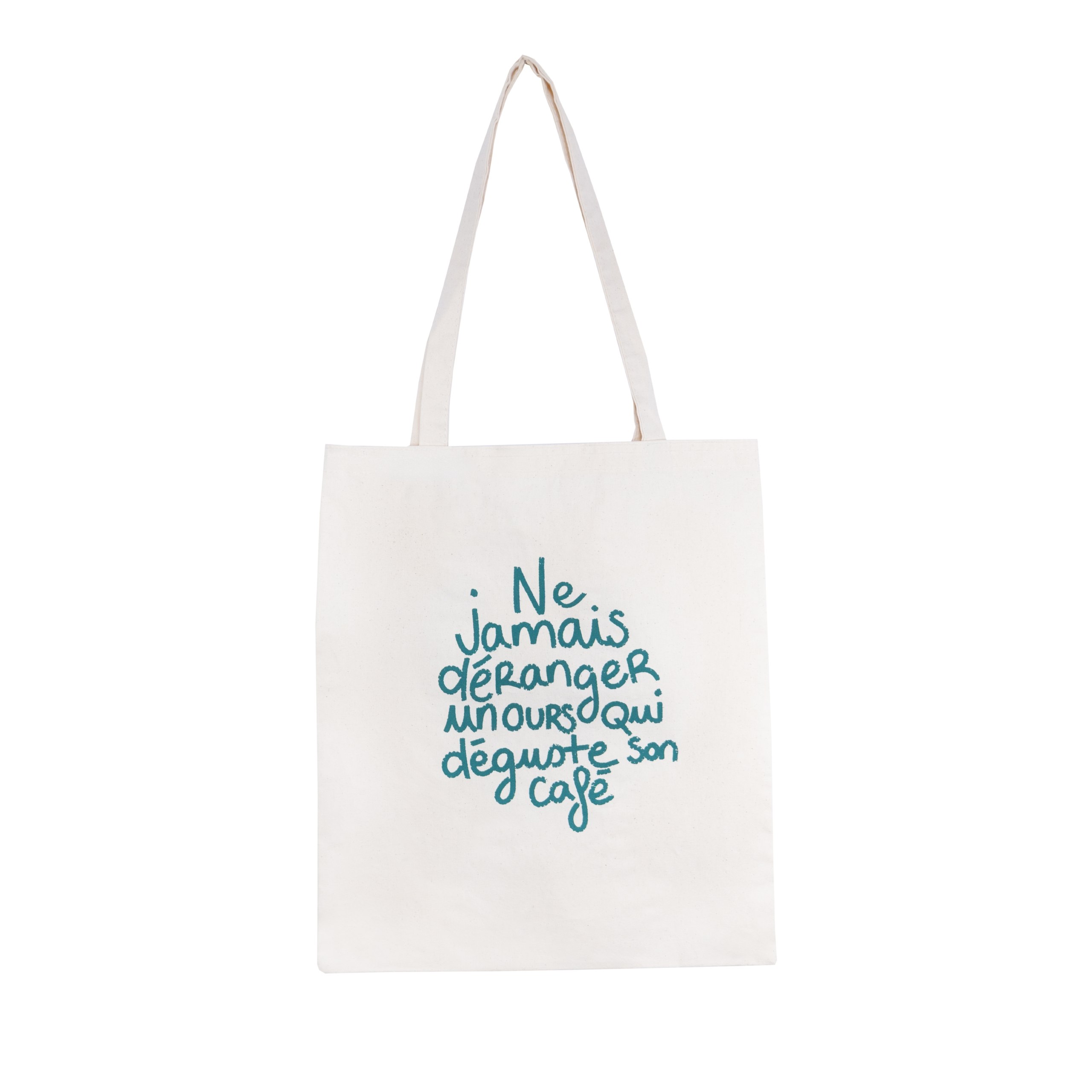 Discove The tote bag for (very) focused bears 🐻 "Never disturb a bear enjoying his coffee." Says it all, right? This green tote bag, as sturdy as it is stylish, is the perfect ally for grumpy morning... or afternoon coffee lovers. With its practical size and humorous message, it accompanies you on all your coffee-fueled missions, while loudly affirming your love of coffee (and your need for calm before the first sip). 💼 Practical, adorable... and graouu-proof.