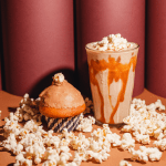 🍿 Milkshake pralipop : milkshake praliné d’amande et noisette au maïs grillé, sauce caramel, topping popcorn.