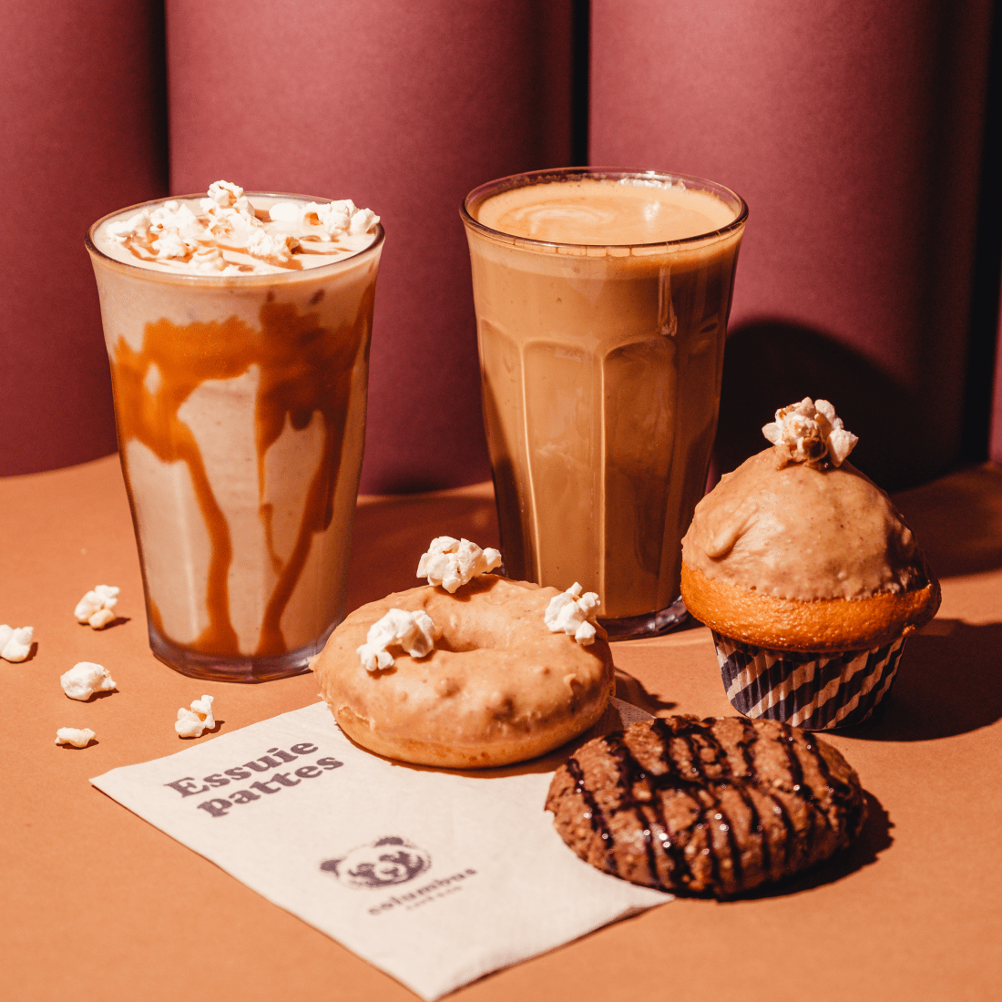 Sirotez nos boissons réconfortantes et croquez dans notre muffin et cookie au cœur fondant praliné pour une explosion de saveurs à chaque bouchée.