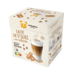 Capsules compatibles Nescafé® Dolce Gusto®, à insérer dans l’appareil dédié; prendre une capsule de lait , faire couler au niveau 5 puis ajouter une capsule de café , faire couler au niveau 2 , laisser reposer et déguster.
