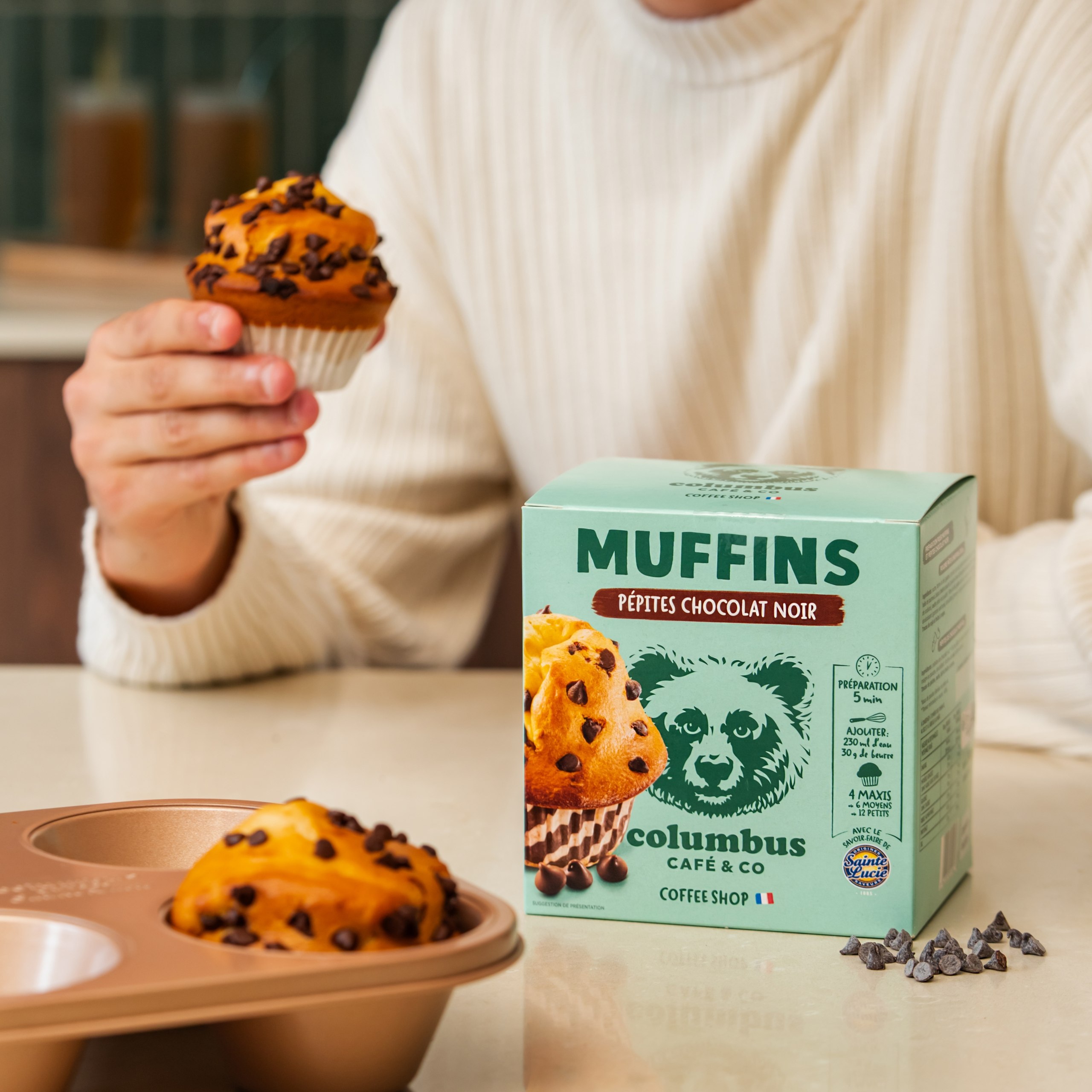 Avec notre préparation pour muffins aux pépites de chocolat noir, retrouve tout ce qui fait le succès de Columbus Café & Co : un goût ultra-gourmand, une texture moelleuse… et ce petit plaisir réconfortant qui fait du bien.